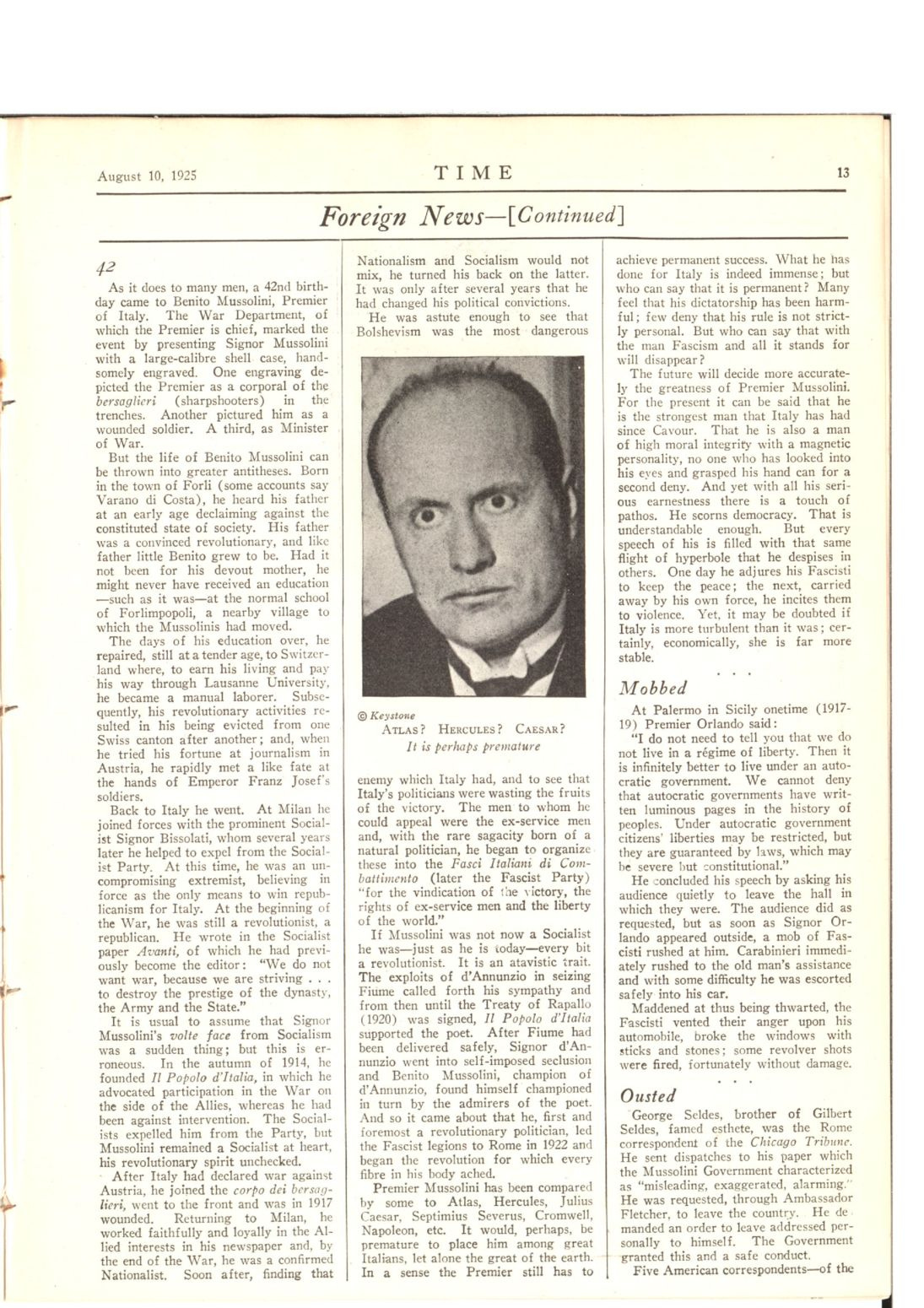 What do you do after you get deported from the Soviet Union? Go to Italy of course. That is always a good response to anything that happens in life. Seldes went to report on Mussolini and the ascent of fascism. Here he denounced the participation of Signor Benito Mussolini, Il Duce, in the assassination of the socialist leader Giacomo Matteotti. The case was a convoluted one, and it is still debated today. Although if you ask me, the evidence on what happened is pretty clear. If you ask Seldes, there was no way to be confused, Mussolini was involved either by commission or omission. As you can expect, Il Duce didnât like this at all and Seldes was also kicked out of Italy.