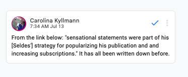 Seldes understood the architecture he was working with and said something along the lines of: âwell my friends, I am tired of this b.s., no more newspapers, I am doing my own newsletter with no advertisement whatsoever. All I need is my articles, a photocopier, and enough readers willing to pay for a subscription.â Yeah, he was somewhat ahead of his time. He had the connections, the expertise, and the guts. He started it in 1940, and he made it work for the next 10 years.